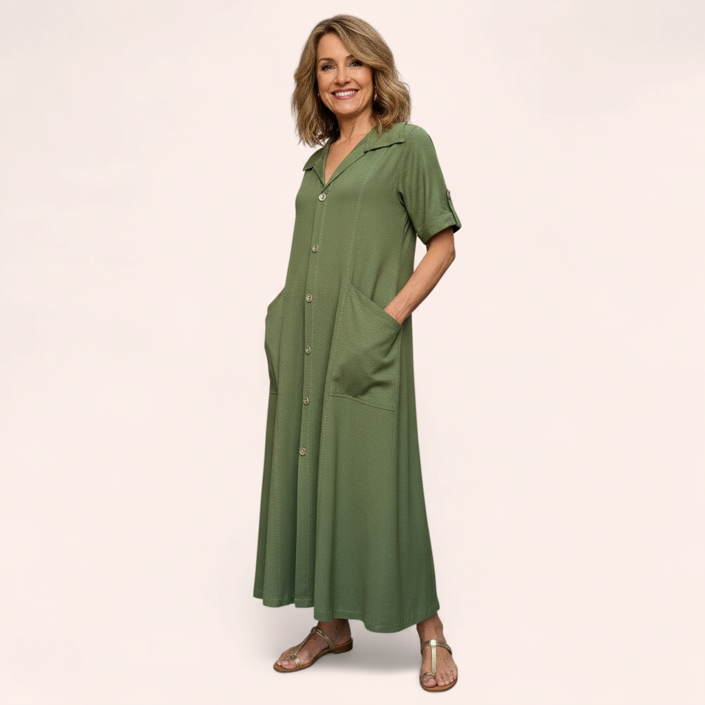 Descubra a elegância da Chemise Laguna! Esta chemise midi evasê é confeccionada em viscolycra de alta qualidade (96% viscose, 4% elastano), garantindo conforto e caimento perfeito. Seu tecido possui tecnologia antipilling, mantendo a peça sempre impecável. Com botões falsos, bolsos chapados, decote em V com gola e manga curta com martingale, é a escolha ideal para quem busca estilo e praticidade em uma só peça. Sinta-se confiante e sofisticada em qualquer ocasião!