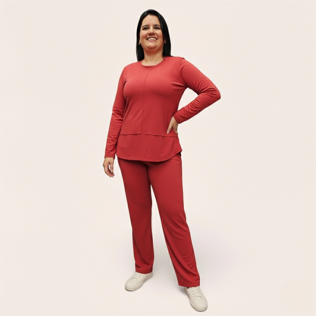 Descubra o Conjunto Atlas, a combinação perfeita de conforto e estilo para o seu dia a dia! Confeccionado em tecido moletinho de alta qualidade (96% viscose e 4% elastano), com tecnologia antipilling que garante durabilidade e toque macio. A blusa mullet traz sofisticação com manga longa, decote redondo e detalhes de costuras recortadas, enquanto a calça reta oferece ajuste perfeito com cós elástico e bolsos funcionais. Vista-se com elegância e praticidade!