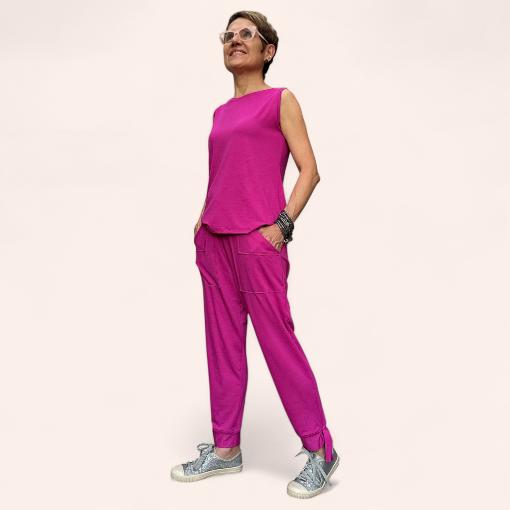 Descubra o Conjunto Índico, feito em tecido viscolycra de alta qualidade (96% viscose e 4% elastano) com tecnologia antipilling para maior durabilidade. A regata traz conforto com alças largas e decote redondo, enquanto a calça cigarrete oferece elegância com bolsos práticos e amarrilho na barra. Perfeito para quem busca estilo e conforto em um só look!